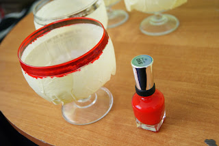 Potrzebujemy taśmę malarską, lakiery do paznokci oraz kieliszki lub szklanki